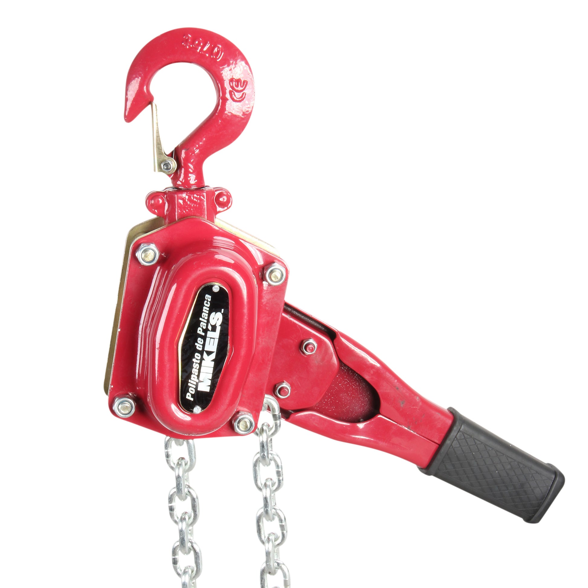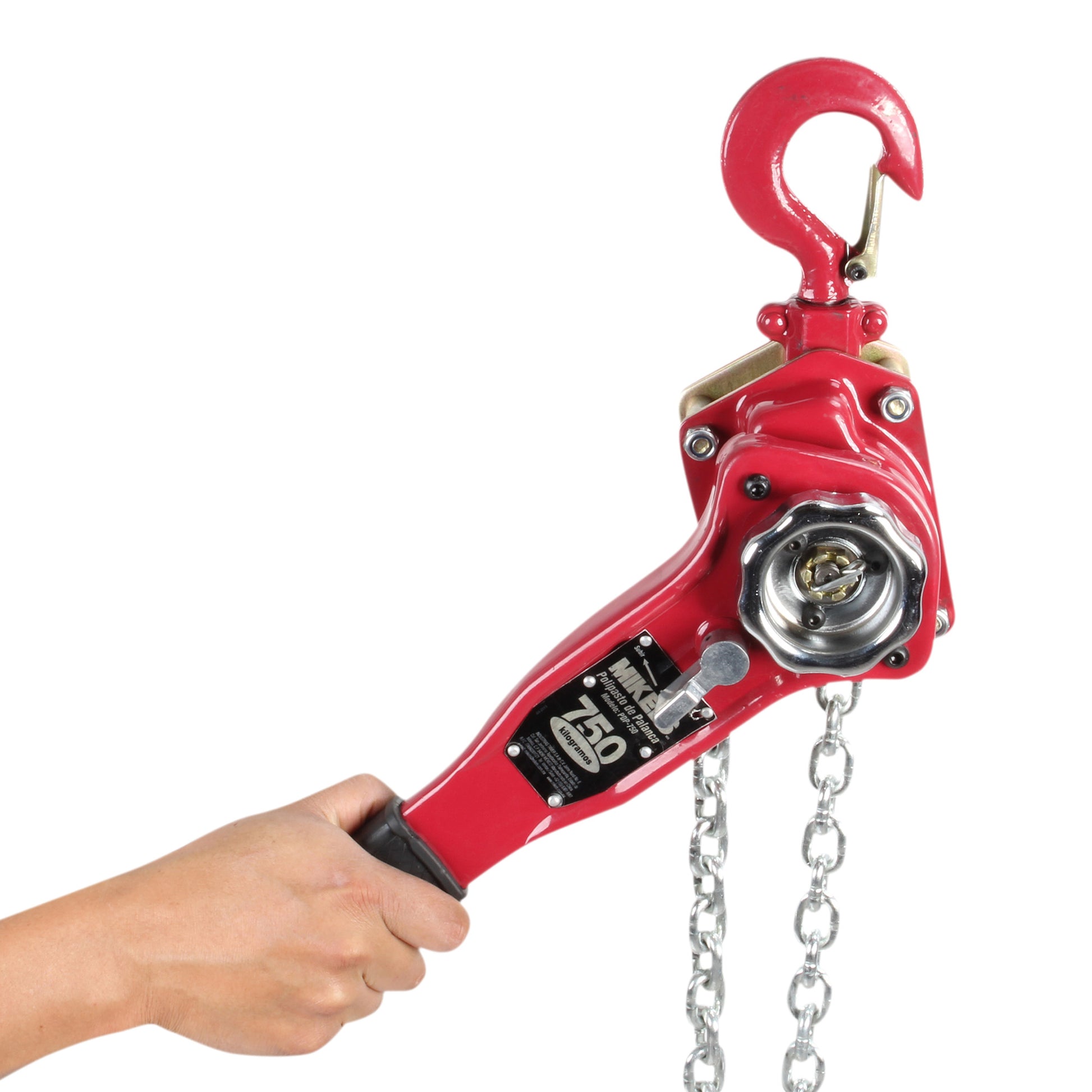 Capacidad de carga 750 kgs Altura de elevacion 1.5 metros Numero de columnas de carga (cadenas) 1 Ganchos de acero forjado con cierres de sujecion. Mango de goma para un mejor agarre, Diametro de eslabon de cadena 6.3 mm